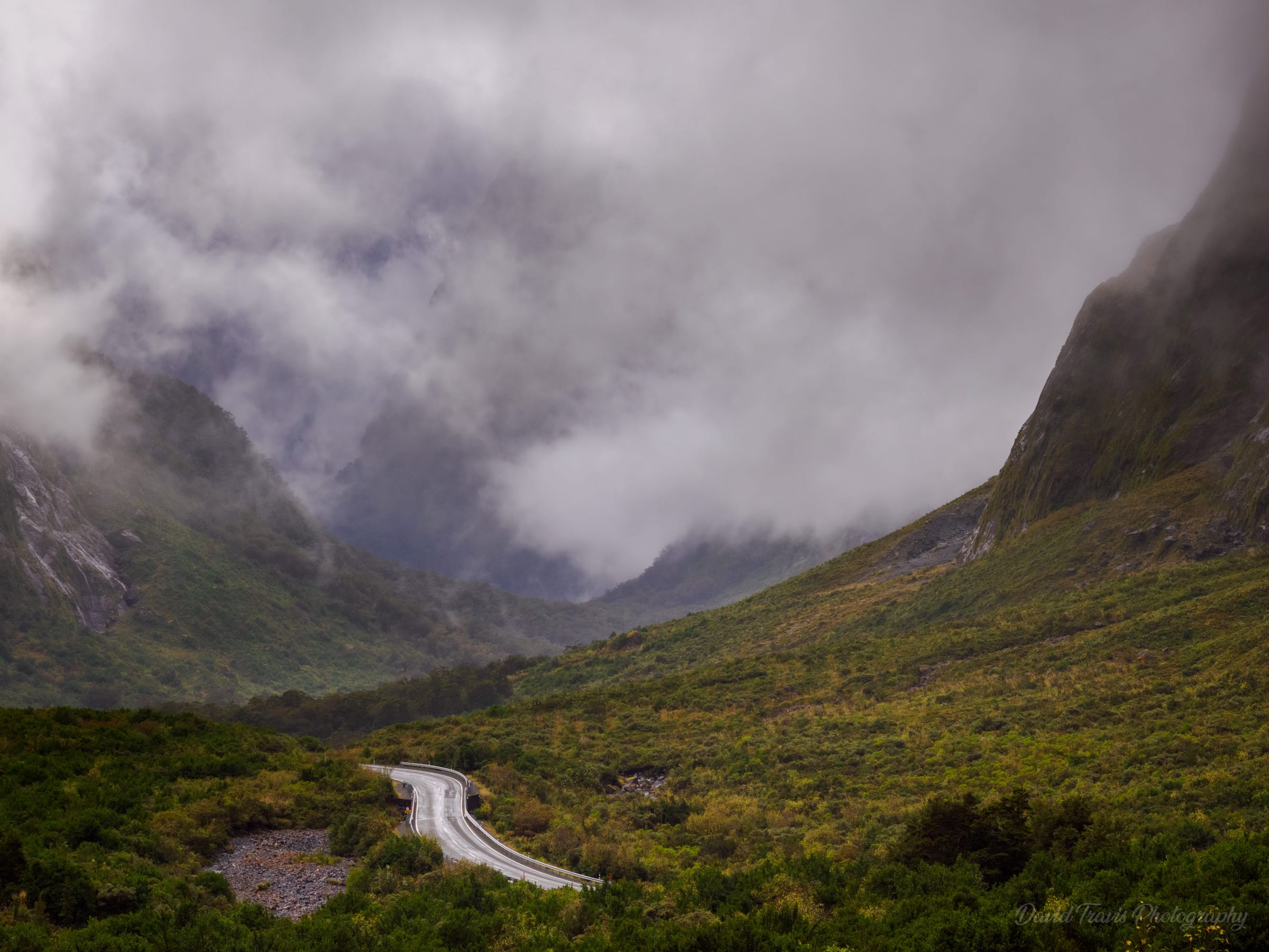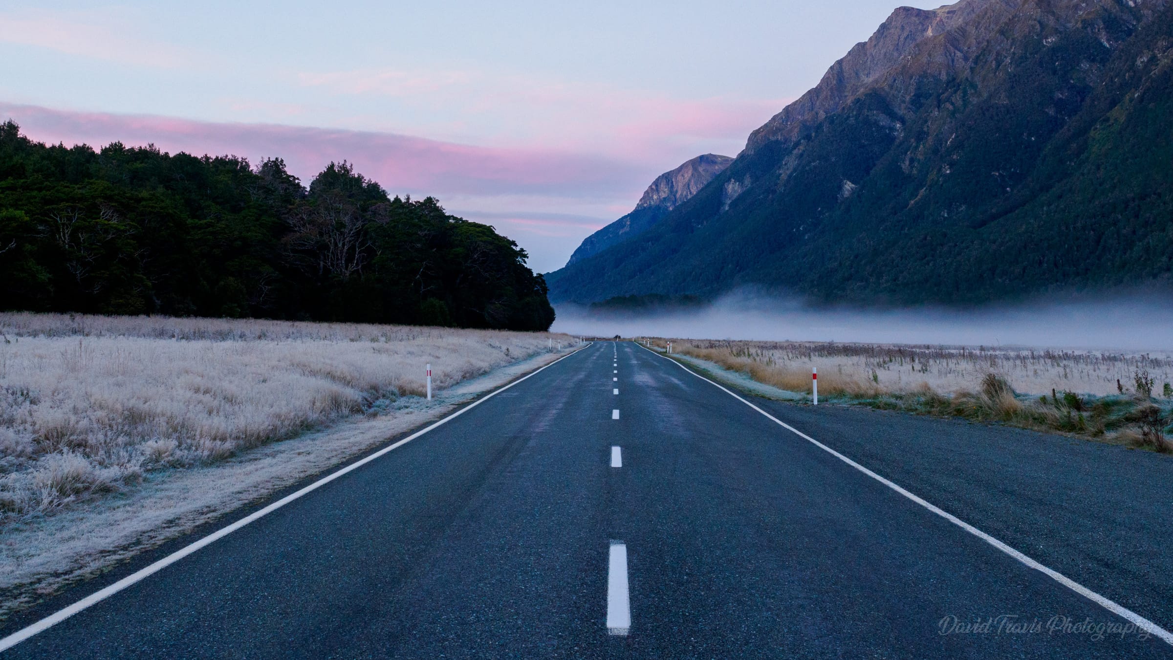 I left Te Anau about an hour before sunrise hoping to get to Eglinton Valley as the light appeared. I was hoping for good light on the mountains heading towards Milford Sound but the sky had more colour looking in the opposite direction. The early morning mist added to the atmosphere so I stood in the middle of the road (keeping an ear out for traffic) and took this shot.