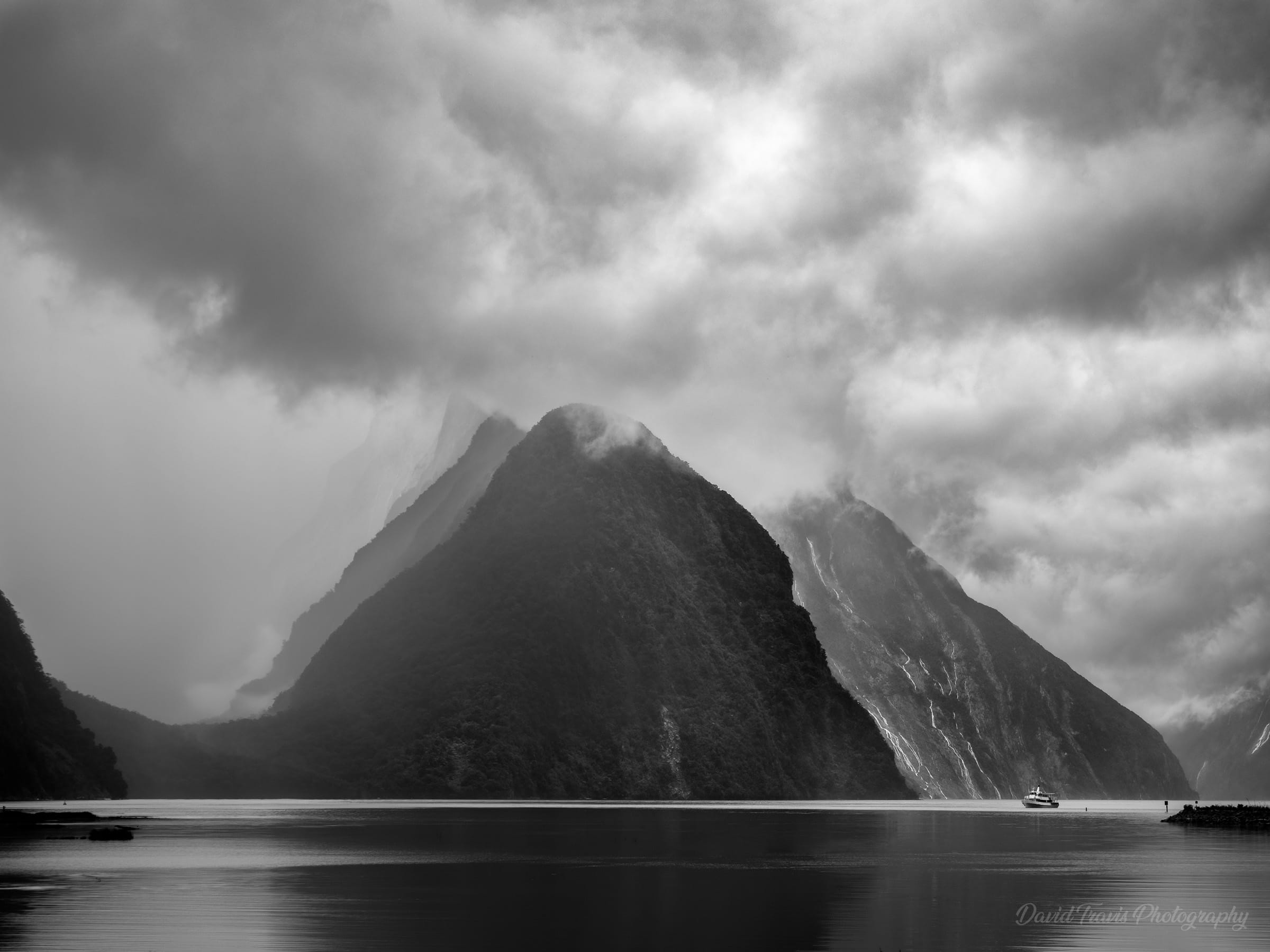 Milford Sound is literally the end of the road. The foreshore is a flat, pebbly area, tricky (and slippy) to walk over. This is pretty much the only composition from this spot, so as a photographer your primary variable is the weather. I took this during a break in some very heavy rain showers.