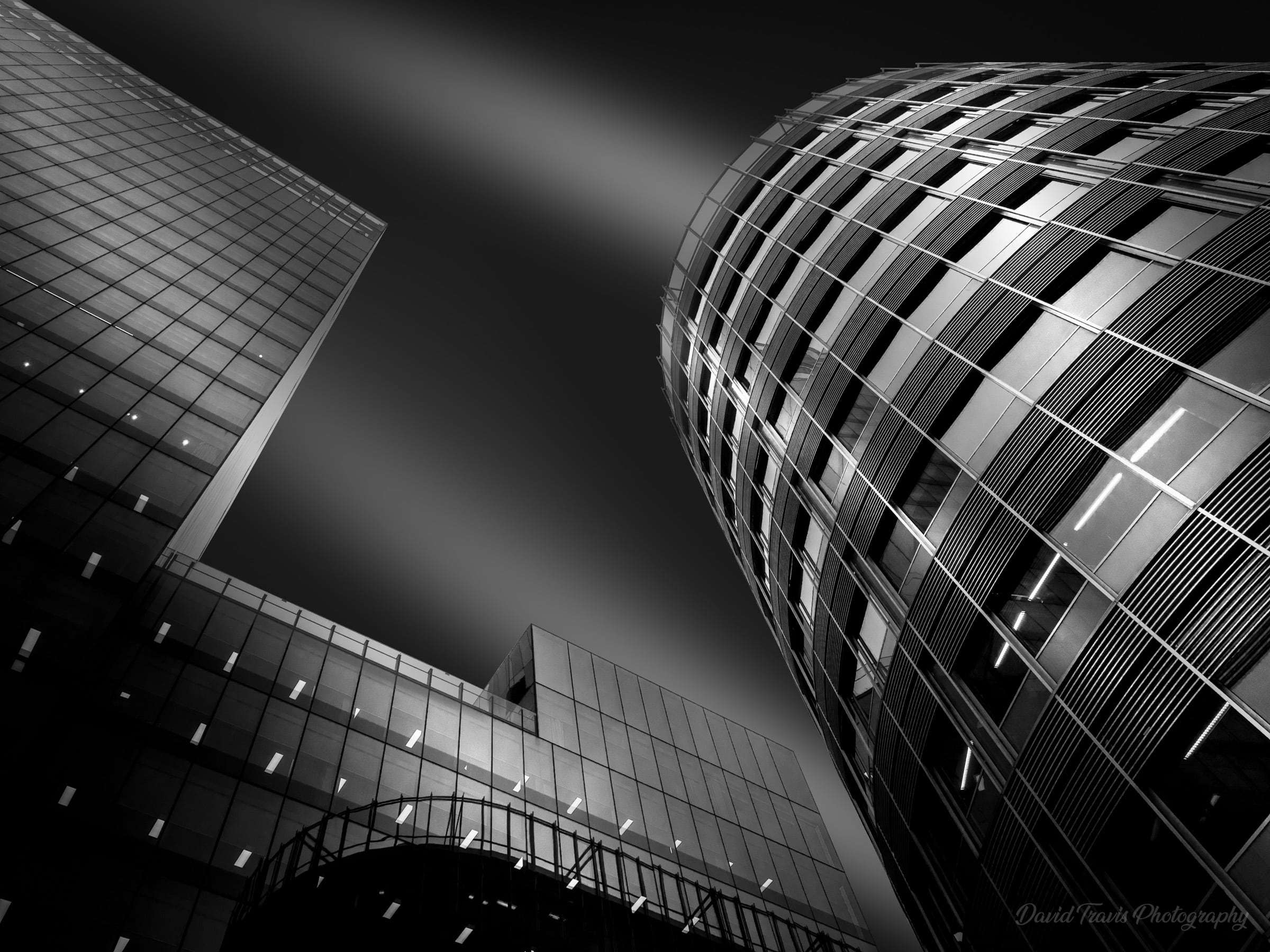 I was in Manchester to drop off a broken computer at the Apple Store. I spent some time walking around looking for pictures and got this of No 1 Spinningfields. This is another example of using contrasting shapes and using the space between the buildings to form an interesting pattern.