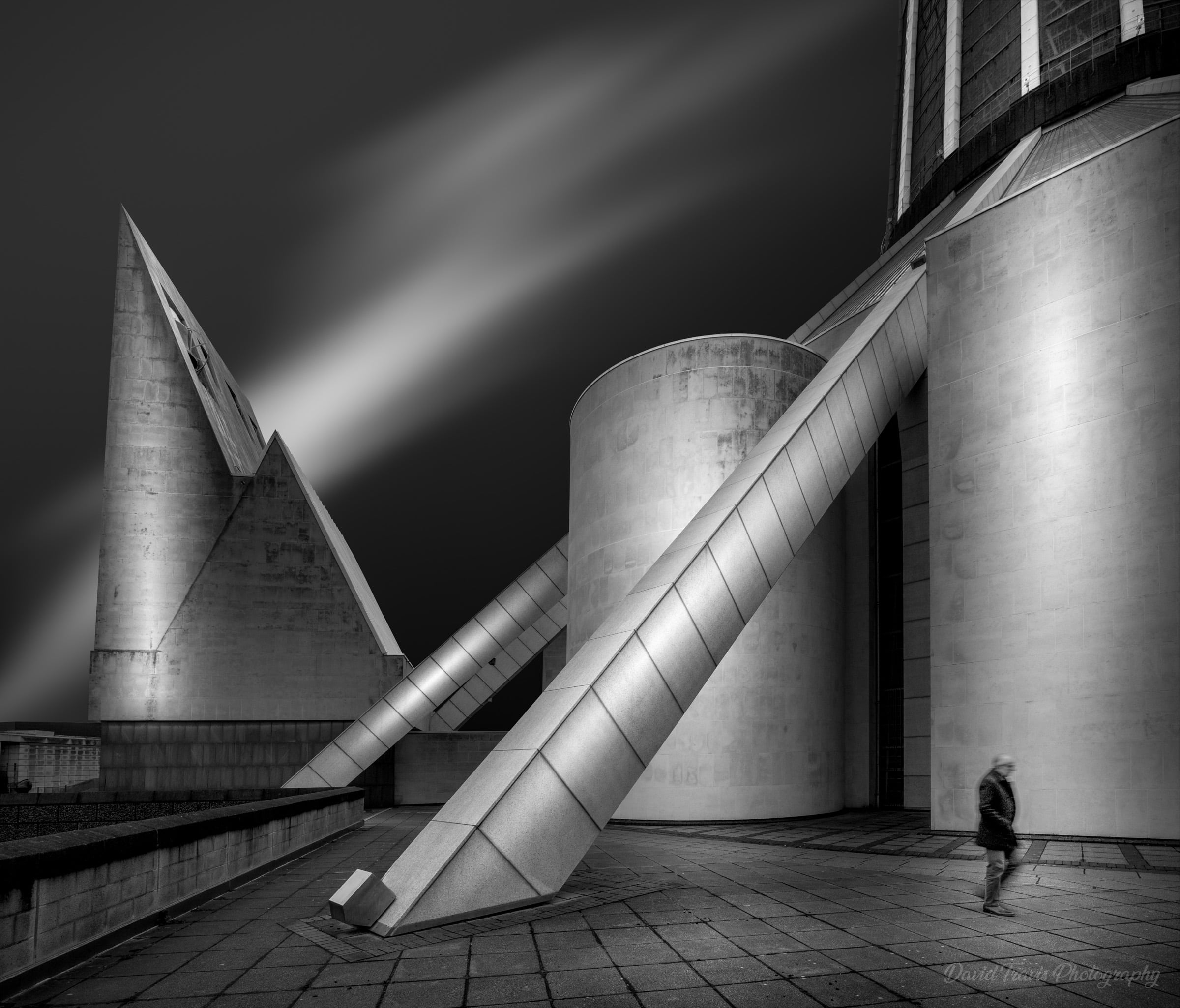 This is Liverpool Metropolitan Cathedral, known locally as Paddy’s Wigwam. It’s a great location for this kind of architectural photography and after spending some time walking around the structure I came across this viewpoint. From this angle, you can almost imagine it’s a rocket about to lift off.