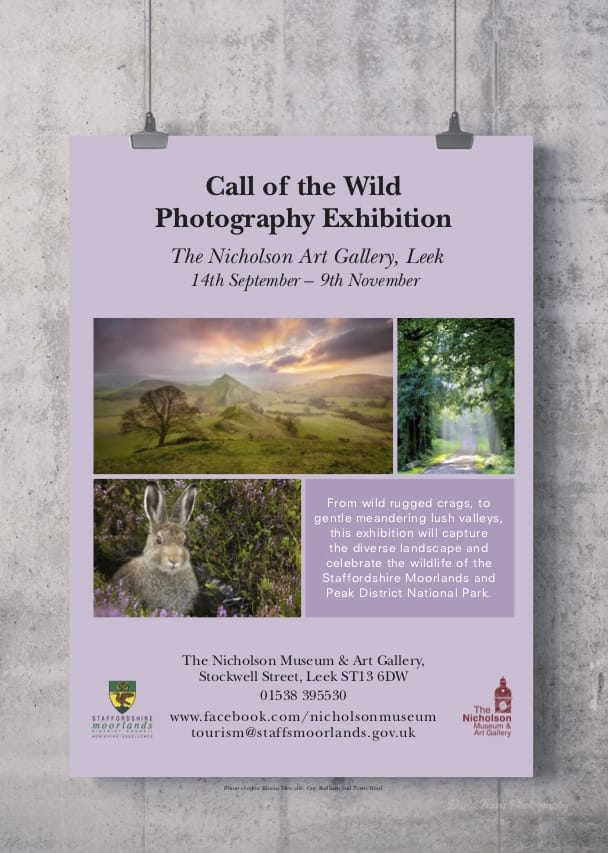 The Nicholson Art Gallery in Leek contacted me a few months ago. They were organising a photography exhibition titled "Call of the Wild" and asked if I would exhibit some of my landscape photographs. This is something I've always been keen to do, so I jumped at the chance.