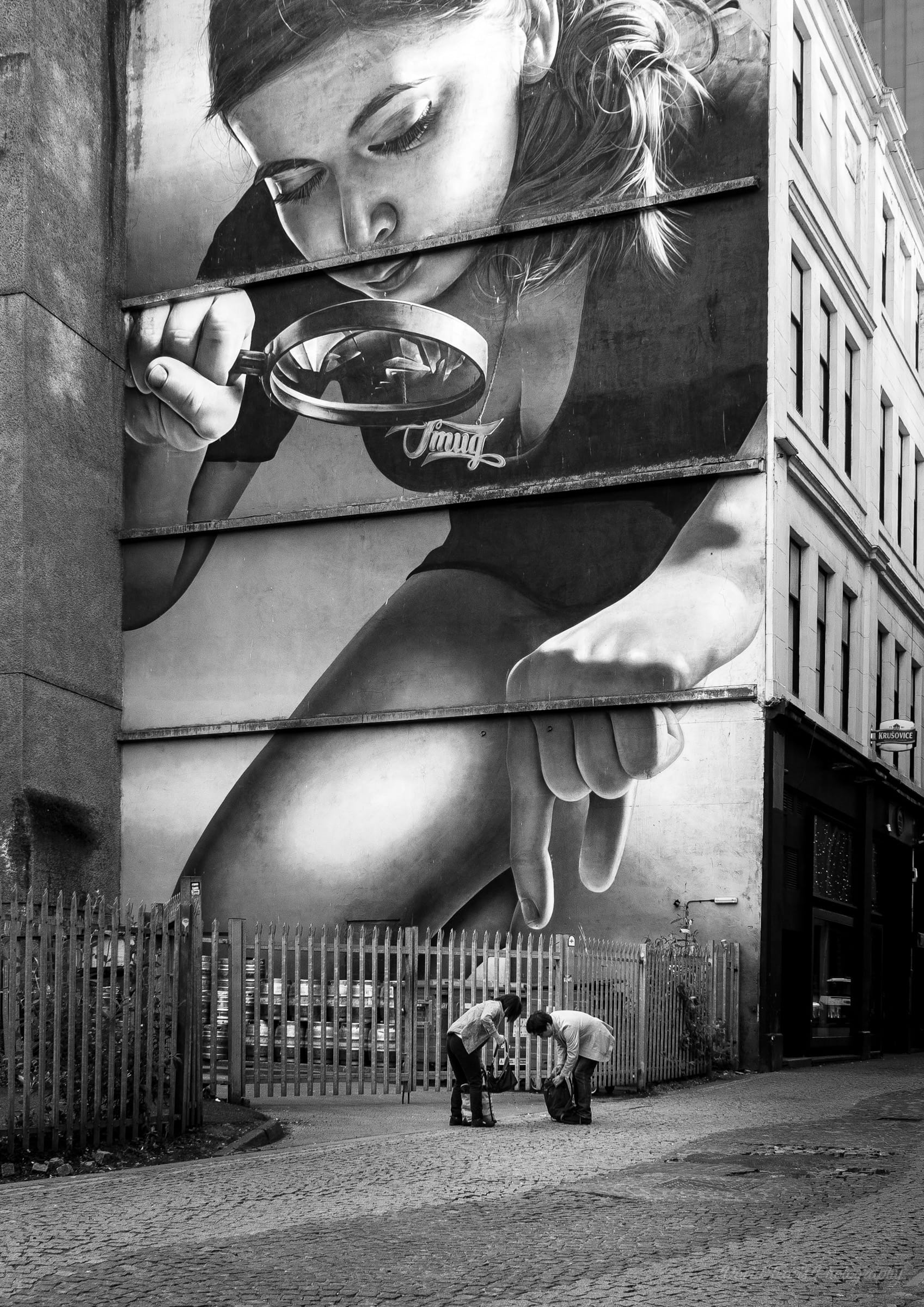 I took this image in the Summer in Glasgow. I spent about 30 mins in this spot. I took about 50 photos during that time, but this is a fairly busy street and many of the shots featured a car or too many pedestrians. The two people in the shot were a couple of tourists who plonked down their bag looking for something.