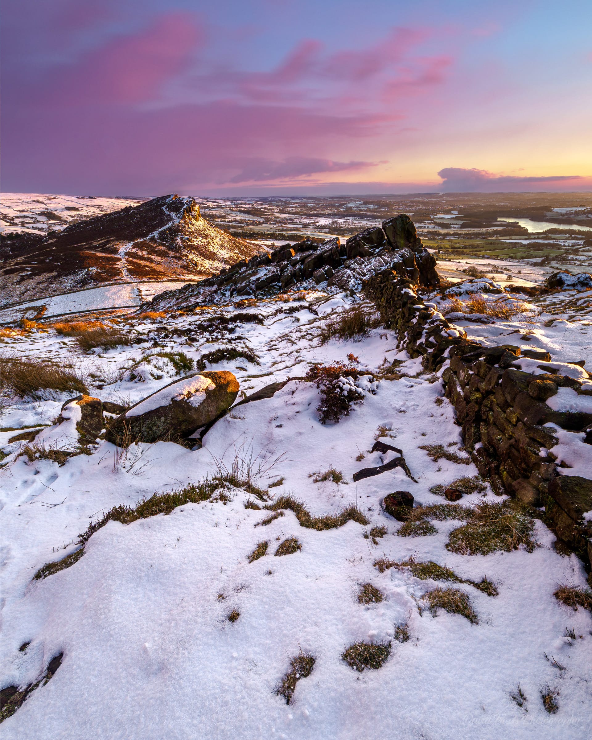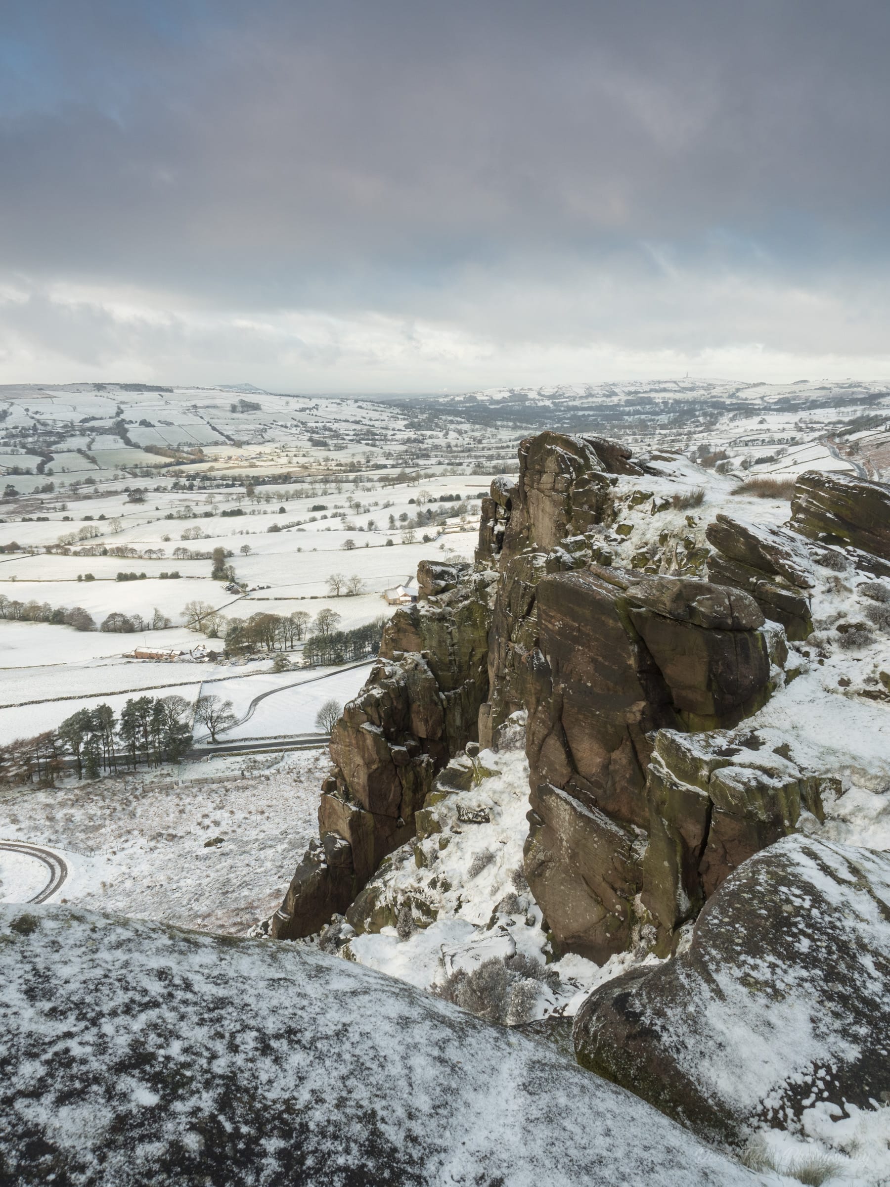 This picture was taken in February looking towards Hen Cloud at dusk. We had had a smattering of snow and I was hoping I could get to this spot on the Roaches before the walkers and climbers created footsteps in the snow. I wanted this picture to complete my ARPS panel (you can read more about my ARPS submission here). It looks like it should have been bitterly cold but my recollection is that there was hardly any wind — unusual for the Roaches.