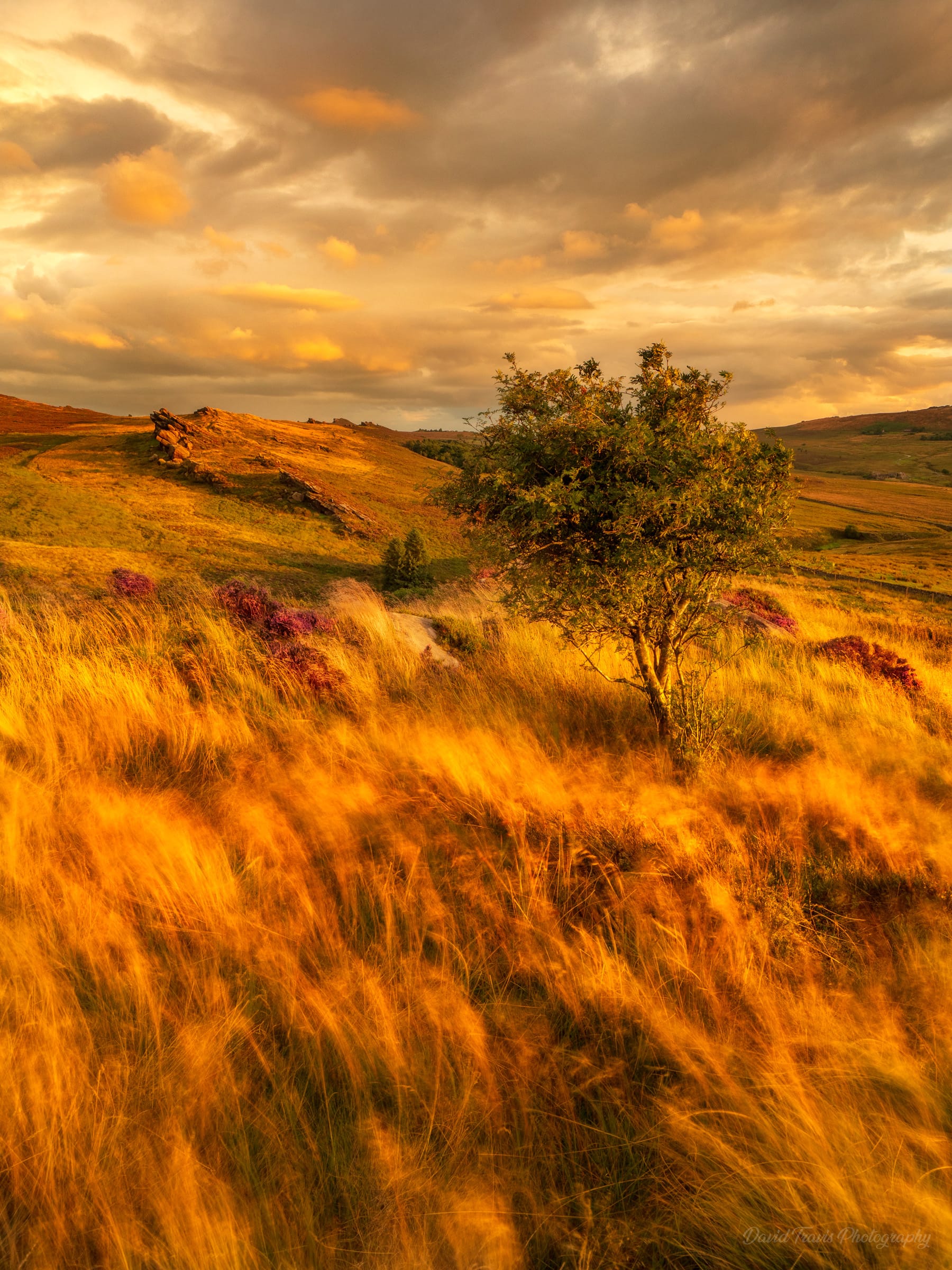 I headed to Gib Torr in August so I could check on the heather situation. The heather was out in parts but it was clear that we were a week or so away from its peak. While looking for compositions that included the heather, I realised that the photograph wasn't about the heather at all but about these grasses. It was windy and they were moving in the breeze. To capture the movement, I used a 6 stop ND filter but that made the leaves in the tree blurry, which I didn't want. So I took another image without the filter and then blended them together.
