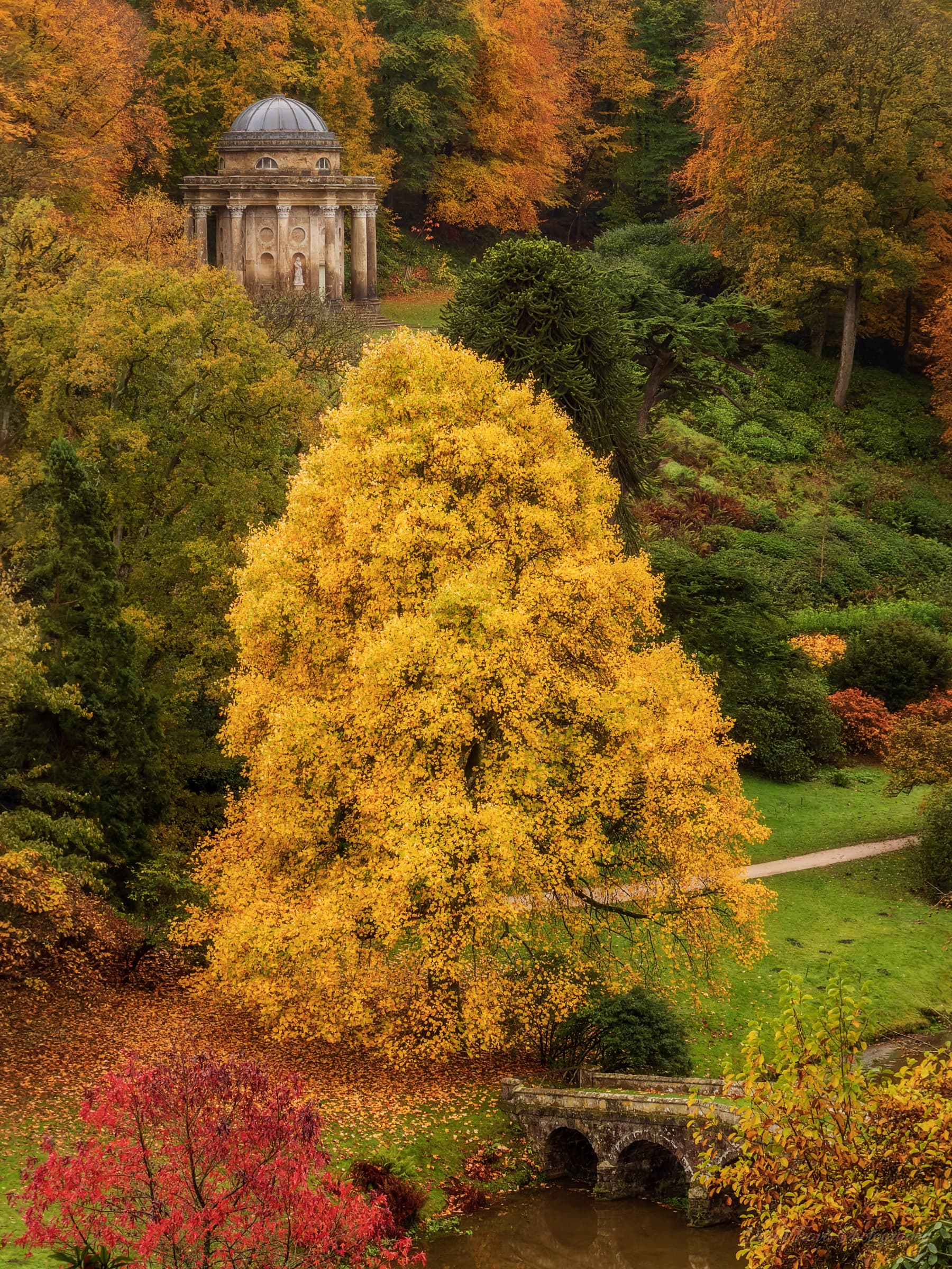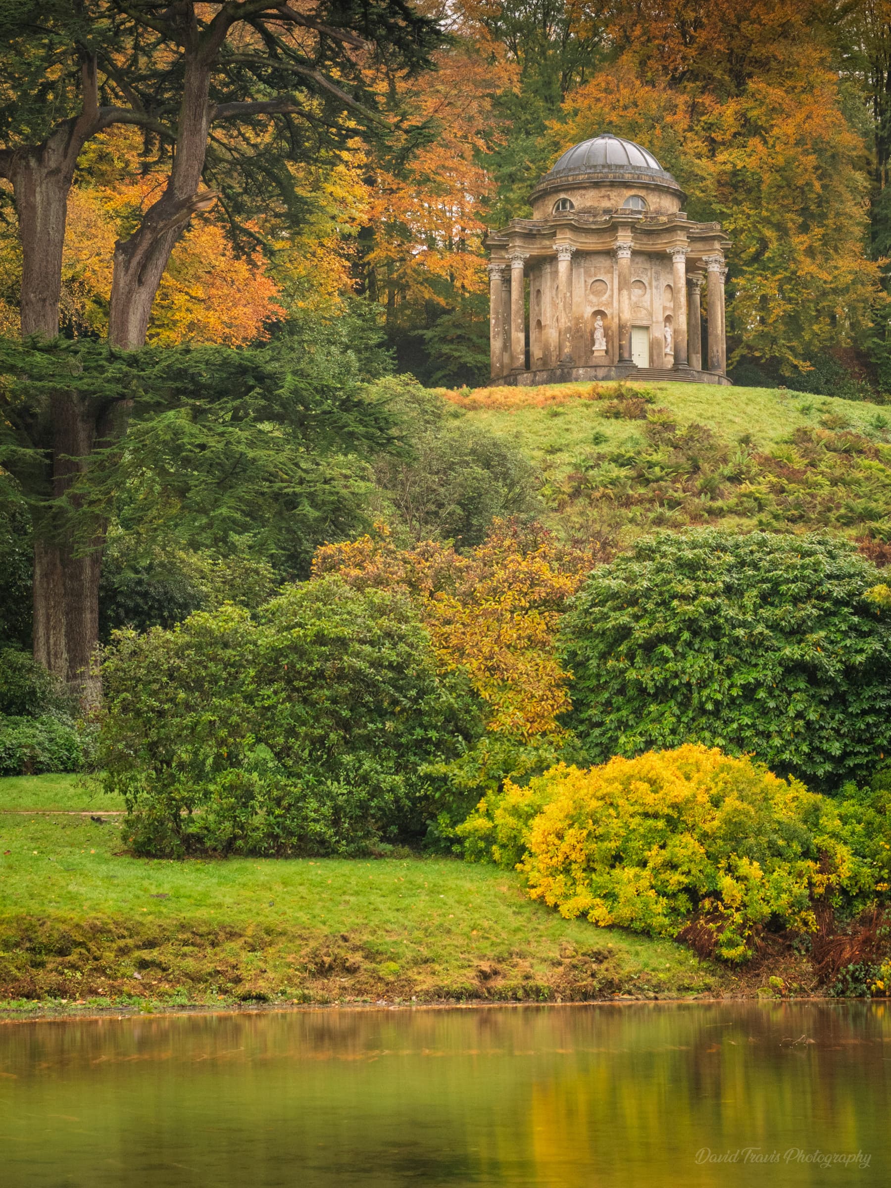 On a hill overlooking the gardens sits the Temple of Apollo, one of a number of temples inspired by scenes of the Grand Tour of Europe. It did look pretty fantastic framed in the autumn foliage.